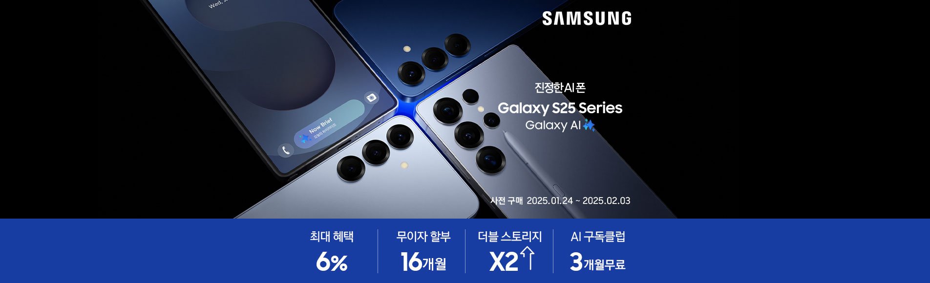 가입 1월 24일 부터 갤릭서 S25시리즈를 반값에 판손 보장까지 받아보실수 있습니다. 월5900원으로 받는 세가지 혜택 놓치지마세요!
