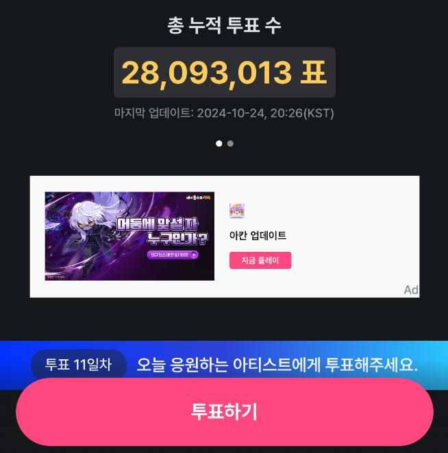 ✅ 투표횟수: 1일 최대 10회 가능 투표는 KST 기준 오후 11시 59분 59초에 마감됩니다.