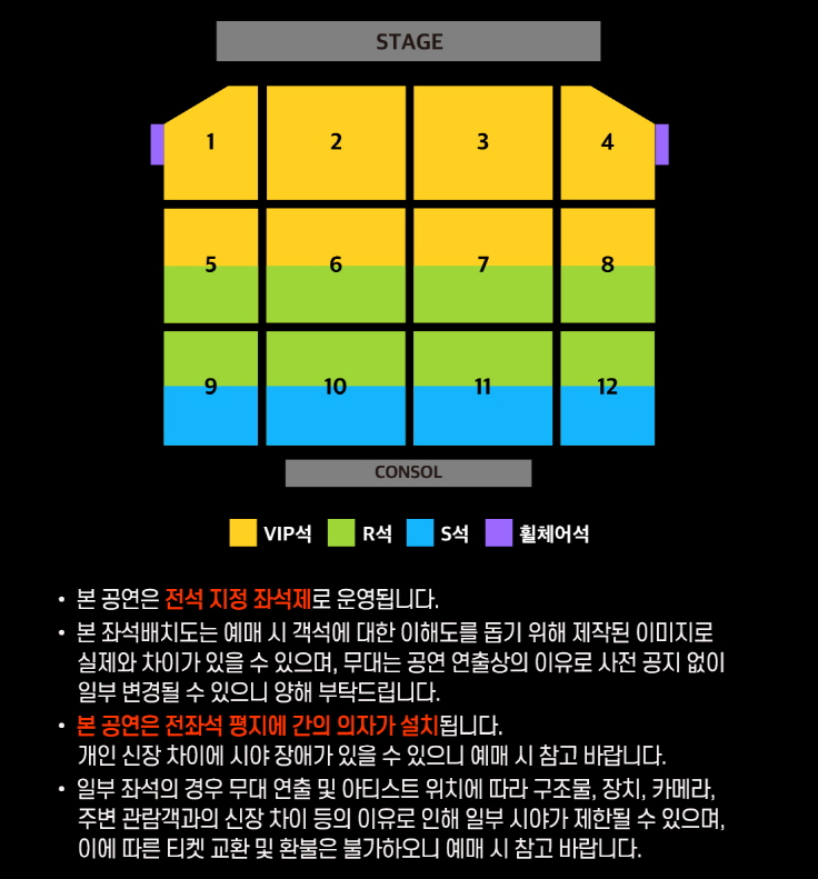 ※ 휠체어석 예매는 인터파크 예매처 전화예매를 통해서만 가능하며, 동반인도 티켓을 구매하셔야 합니다.